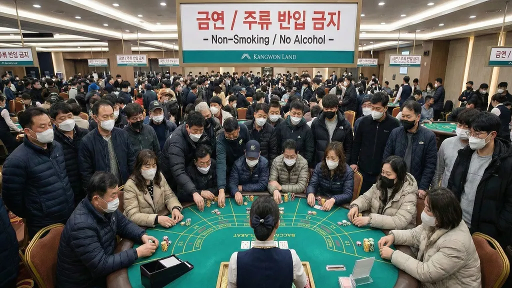 강원랜드의 가장 큰 특징은 테이블 게임 좌석의 희소성입니다. 주말이나 성수기에는 블랙잭, 바카라 테이블에 앉는 것이 하늘의 별 따기입니다. 따라서 방문 전날 ARS 예약 시스템을 통해 입장 순번을 추첨 받는 것이 필수입니다. 당첨되어 앞 번호를 받으면 좌석을 배정받을 수 있지만, 그렇지 않다면 입석(스탠딩)으로 뒤에서 베팅해야 합니다. 객장이 매우 혼잡하므로 서로 간의 매너가 더욱 중요합니다. 뒷전에서 베팅할 때는 좌석에 앉은 플레이어(핸디)의 플레이에 훈수를 두거나 방해해서는 안 되며, 칩을 올릴 때도 정중하게 부탁하거나 정해진 구역(사이드 베팅 존)을 이용해야 합니다. 또한, 강원랜드는 해외와 달리 음주 후 입장이 불가하며, 게임장 내에서도 주류를 판매하지 않습니다. 대신 무료 음료 바에서 탄산음료나 커피를 무제한으로 이용할 수 있습니다.