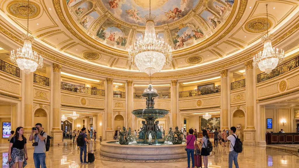 리조트에 들어서는 순간, 베르사유 궁전을 연상시키는 웅장한 로비와 화려한 돔 천장, 그리고 분수대가 방문객을 압도합니다. 이곳의 가장 큰 특징은 단연 리조트 전면에 위치한 1/2 스케일의 에펠탑입니다. 7층과 37층에 마련된 전망대에서는 마카오 시내와 코타이 스트립의 눈부신 야경을 파노라마로 감상할 수 있어 최고의 포토 스팟으로 통합니다. 약 2,500개의 객실 내부 또한 붉은색과 푸른색을 활용한 현대적인 프랑스풍 인테리어로 꾸며져 있어, 머무는 동안 마치 파리의 귀족이 된 듯한 기분을 느낄 수 있습니다. 샹젤리제 거리를 재현한 쇼핑 아케이드에서의 산책은 이국적인 정취를 더해주며, 곳곳에서 펼쳐지는 거리 예술가들의 퍼포먼스는 실제 파리 거리를 걷는 듯한 착각을 불러일으킵니다.