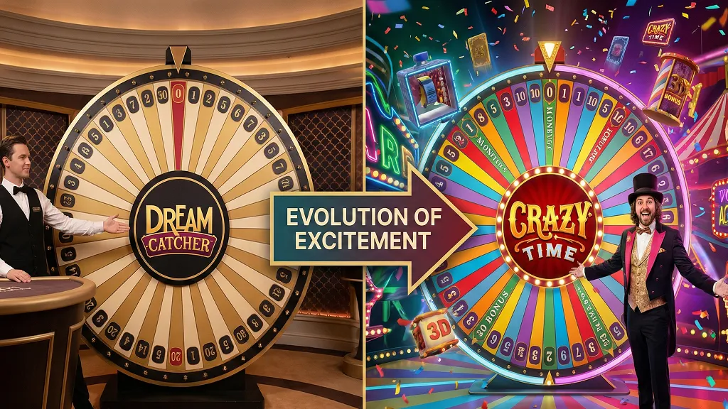 크레이지타임은 에볼루션의 기존 흥행작인 '드림캐처(Dream Catcher)'의 DNA를 물려받았지만, 그 스케일과 시스템은 완전히 다릅니다. 드림캐처가 오직 숫자에만 베팅하는 심플하고 직관적인 휠 게임이라면, 크레이지타임은 4가지 화려한 미니게임이 추가되어 예능 프로그램과 같은 엔터테인먼트 요소가 극대화되었습니다. 다양한 옵션 탓에 초보자에게는 룰이 다소 복잡해 보일 수 있으나, 라이브 딜러의 재치 있는 진행과 실시간 채팅을 통한 유저 간의 소통은 이내 깊은 몰입감을 선사합니다. 유튜브나 트위치의 수많은 스트리머들이 수천 배의 배당이 터지는 순간의 환희를 실시간으로 공유하면서, 크레이지타임은 단순한 카지노 게임을 넘어 글로벌 온라인 축제로 자리 잡았습니다. 화려한 볼거리와 극한의 변동성을 원한다면 크레이지타임은 최고의 선택입니다.