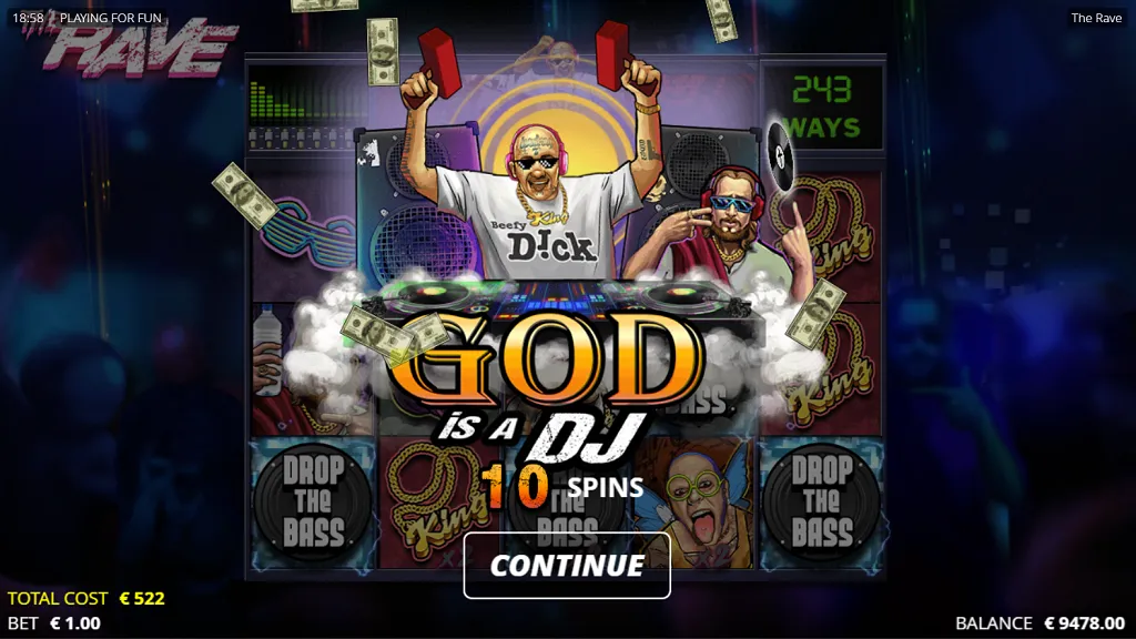 이 게임의 진정한 재미는 'DROP THE BASS' 스캐터 심볼을 통해 진입하는 프리스핀에서 폭발합니다. 스캐터 3개나 4개가 등장하면 '머더 온 더 댄스플로어(MURDER ON THE DANCEFLOOR)' 모드가 시작되며, 스캐터 개수만큼 화면 하단의 '인핸서 셀'이 열립니다. 이곳에 고배당 캐릭터가 등장하면 강력한 배수가 적용됩니다. 만약 스캐터 5개를 모은다면 최상위 보너스인 '갓 이즈 어 디제이(GOD IS A DJ)' 모드에 돌입합니다. 무려 5개의 인핸서 셀이 모두 활성화되며 오직 특수 심볼만 나타나 압도적인 잭팟을 보장합니다. 또한, 보너스 중에는 릴이 연결되는 '사이드 체인', 저배당 심볼을 와일드로 바꾸는 '크로스 페이더', 고배당 심볼로 업그레이드하는 '매시 업' 기능이 무작위로 발동되어 파티의 열기를 최고조로 끌어올립니다.
